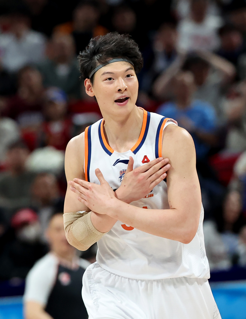 新华社相片,北京,2026年4月12日\n 4月12日,上海久事队球员王哲林在比赛中庆祝得分。\n 4月12日,在2025-2026赛季中国须眉篮球工作联赛(CBA)惯例赛第38轮比赛中,上海久事队客场88比83战胜北京北汽队。\n 新华社记者 张晨 摄