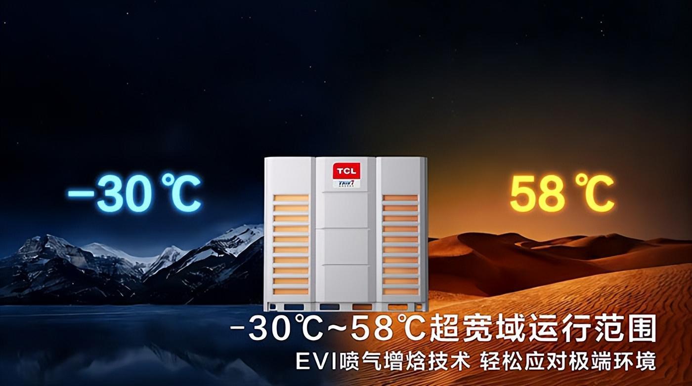 TCL TMV7 AI多联机给出的治理决策,是一场从中枢部件到系统假想的全面雠校。据TCL智能暖通公布的费力自大,机组杀青了-30℃-58℃超宽初始范围的隐敝,竟然作念到全征象无界适配。