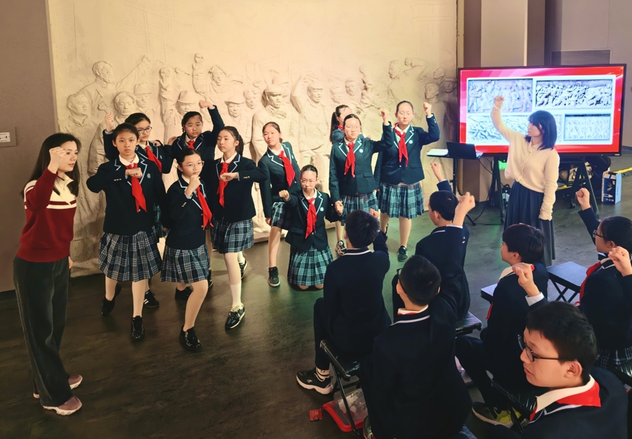 好意思术课上,学奏效法一大挂牵馆浮雕造型,了解五四时间的好意思术作品。