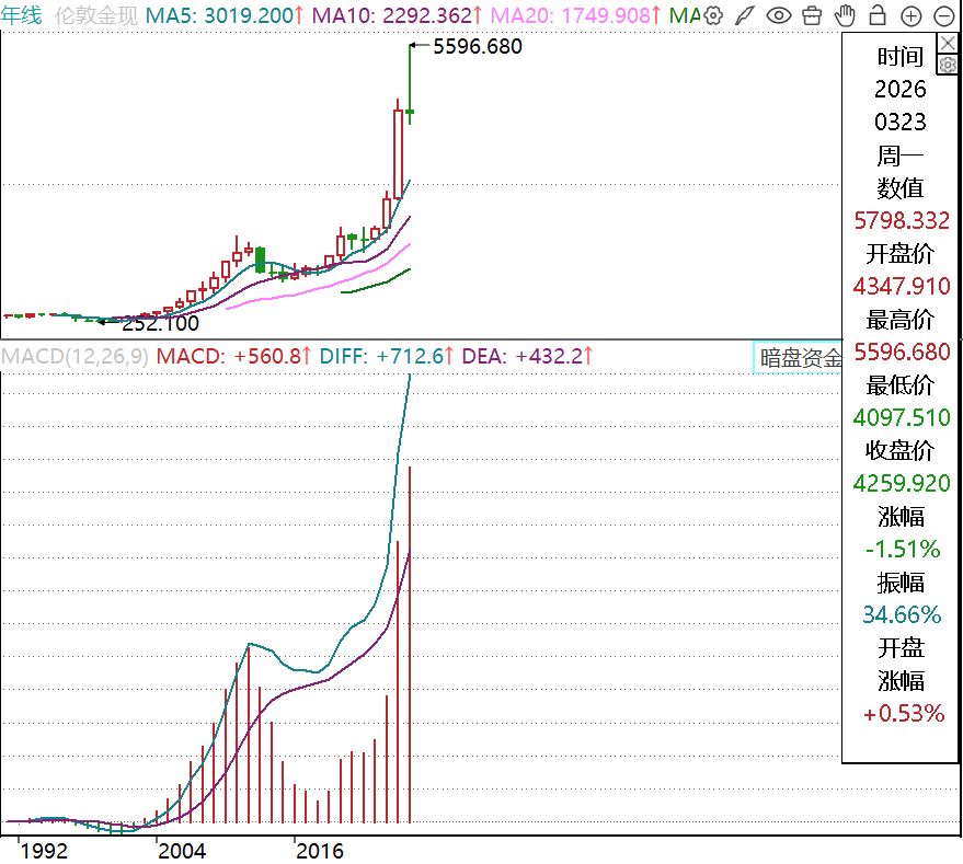 搁置当今,伦敦现货黄金报4259.92好意思元/盎司,年头迄今累计跌幅为1.51%。