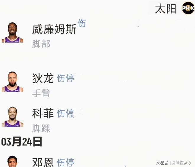 不外太阳这边伤病满营,狄龙、科菲、威廉姆斯都打不了。