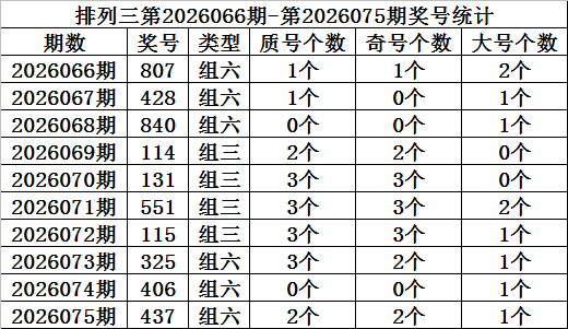 上期回来:胪列三第2026075期开奖:437,质合比为2:1,奇偶比为1:2,大小比为2:1。