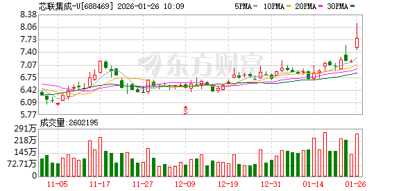芯联集成-U股价创出历史新高,截至9:32,该股上涨8.51%,股价报7.78元,成交量3987.13万股,成交金额3.04亿元,换手率0.90%,该股最新A股总市值达652.17亿元,配资门户网该股A股流通市值344.64亿元。