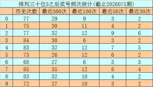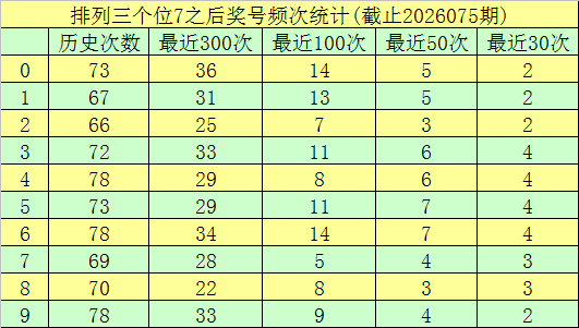 第三位杀号:第三位上期出现奖号7,该位历史上奖号7已开出了725次,最近100治安三位开出7时,下期号码0-9辞别落号:号码6、0→14次,1→13次,3、5→11次,9→9次,4、8→8次,2→7次,7→5次。