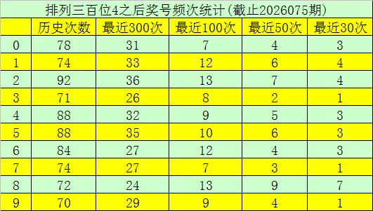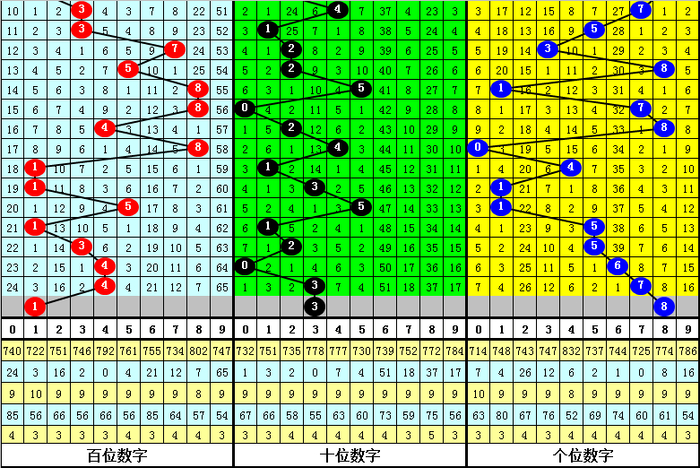 第一位杀号:上期第一位奖号为4,第一位奖号4历史上出现792次,前100次该位开出奖号4之后,下期号码0-9出现次数从高到底辞别为:号码2、8→13次,1、6→12次,5→10次,4、9→9次,3→8次,0、7→7次。