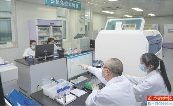 在淄博市博山区中病院,职责主谈主员在考试“医联体”成员送检的样本。新华社发