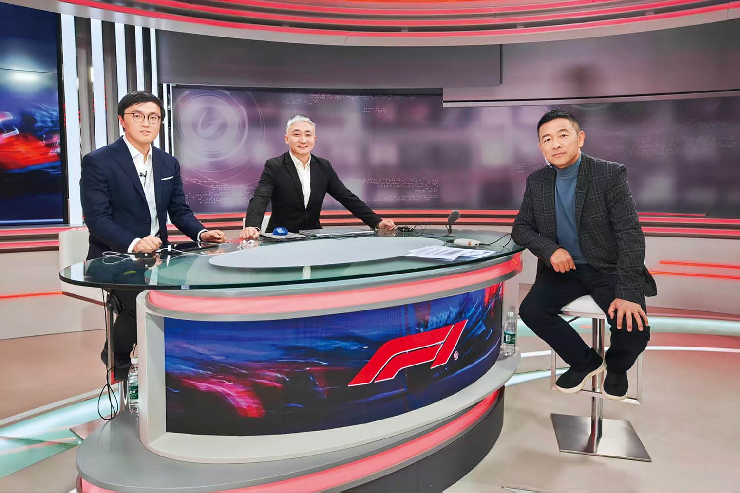 上图:2009年头始,叶飞(中)就初始参与上海五星体育的F1赛事讲解,一直坚捏到当今。