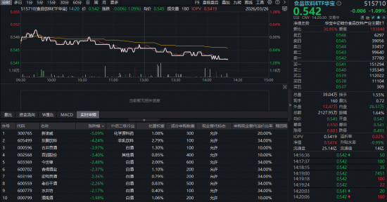 吃喝板块当天(3月26日)随市回调。反馈吃喝板块合座走势的食物饮料ETF华宝(515710)颤动走弱,畛域发稿,场内价钱跌1.09%。